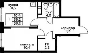 8 858 484 ₽1-к.квартира, 38.3 м², 11 эт.