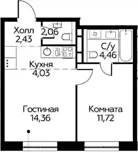 8 270 096 ₽1-к.квартира, 35.43 м², 14 эт.