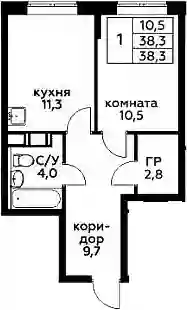 38.3 м2