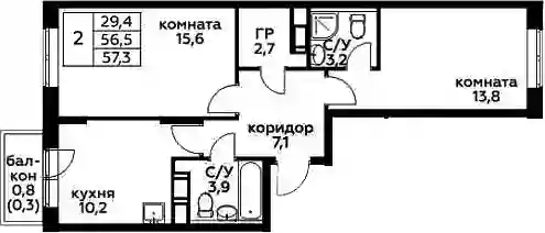 56.5 м2