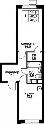 12 400 791 ₽1-к.квартира, 40.3 м², 14 эт.