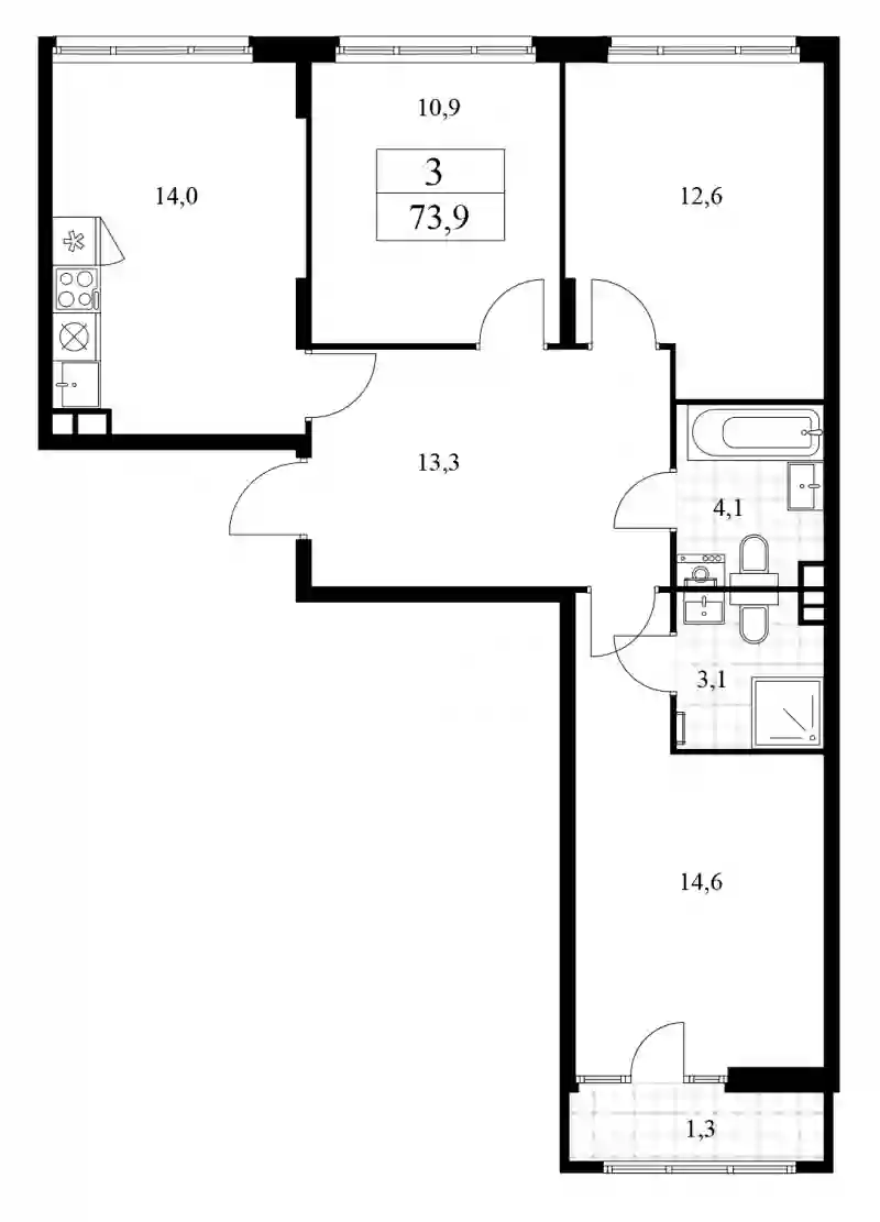 25 954 419 ₽3-к.квартира, 72.6 м², 15 эт.