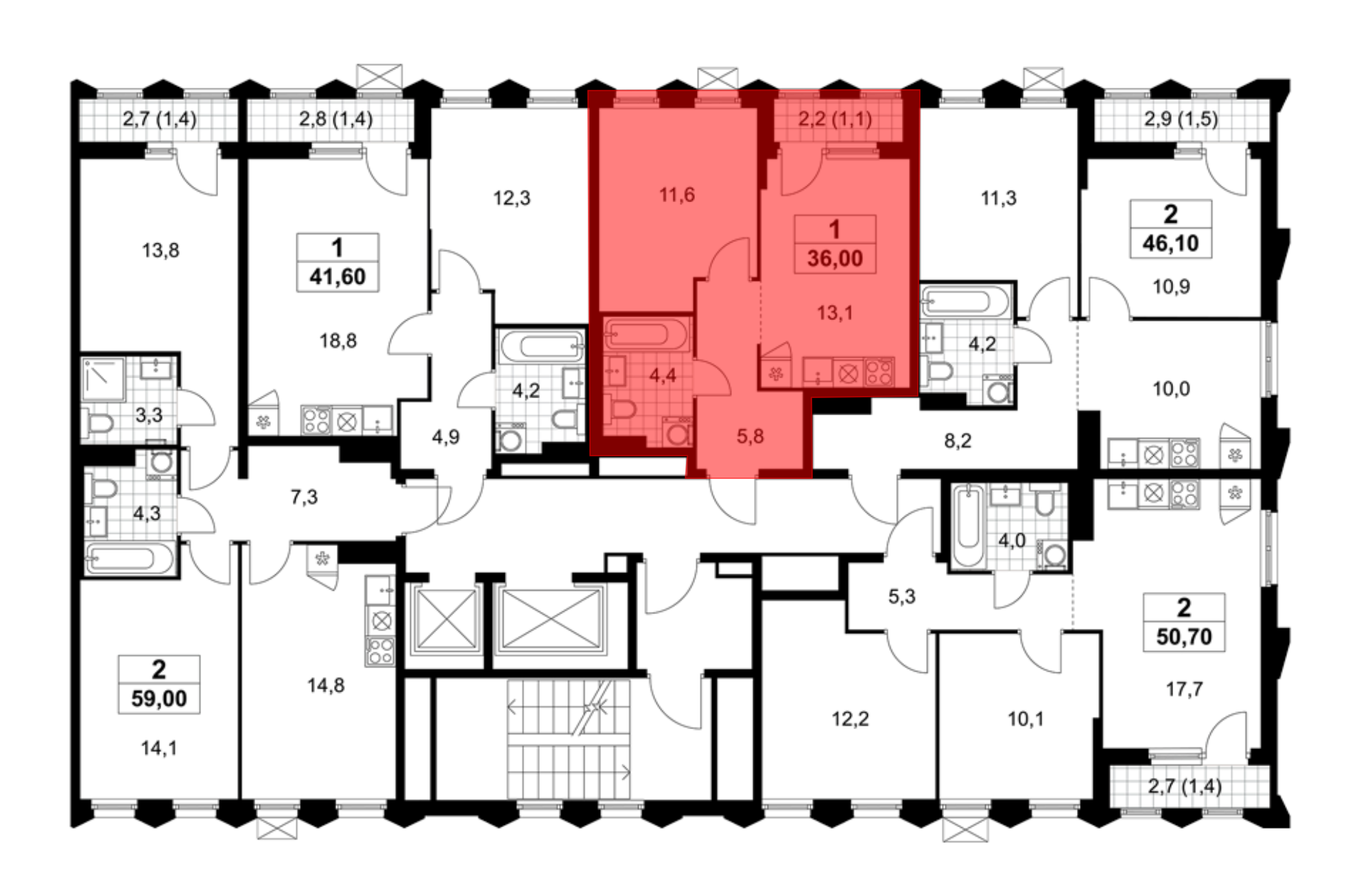 13 267 738 ₽2-к.квартира, 40.6 м², 12 эт.