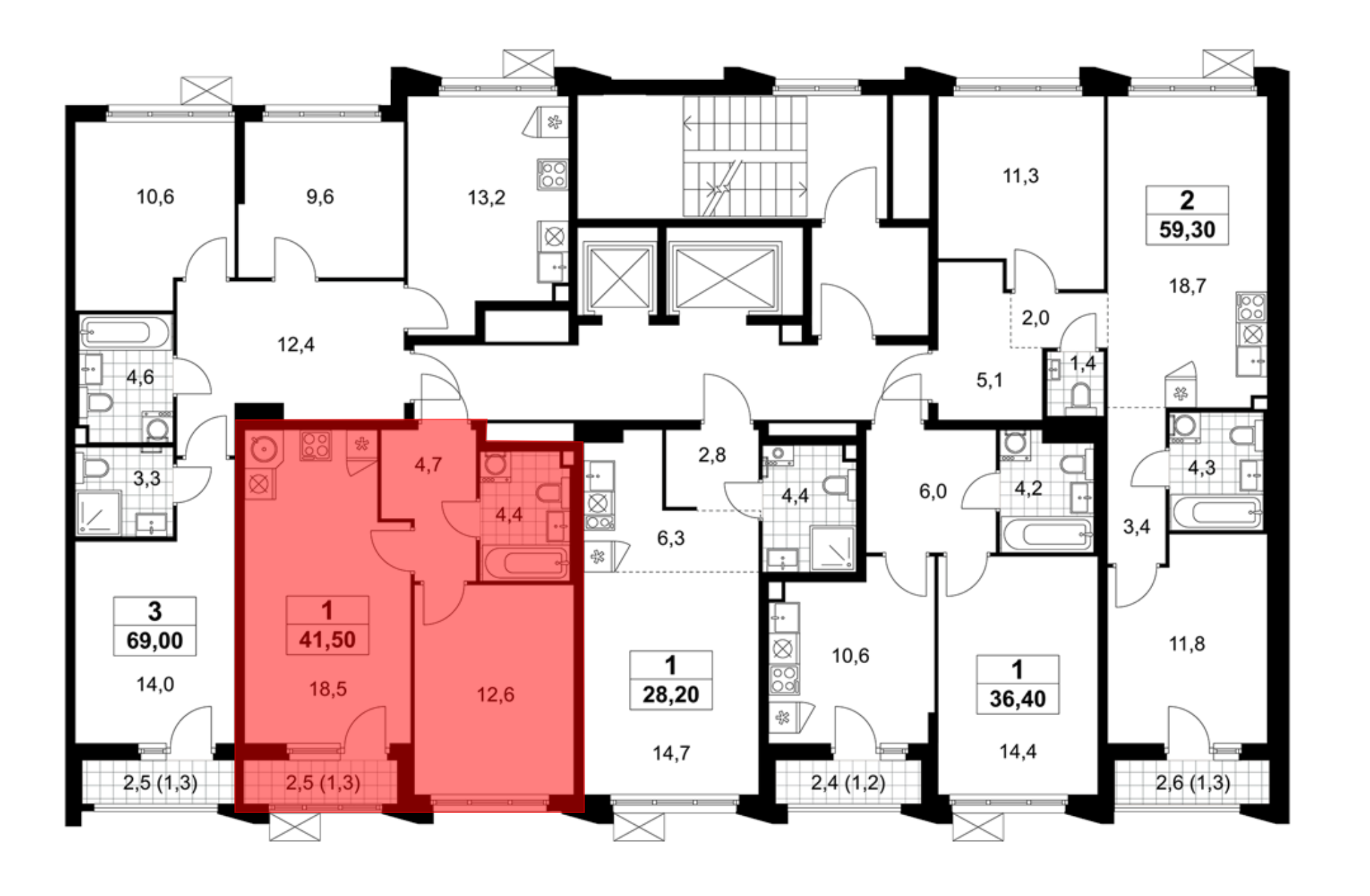 10 377 288 ₽2-к.квартира, 41.5 м², 13 эт.