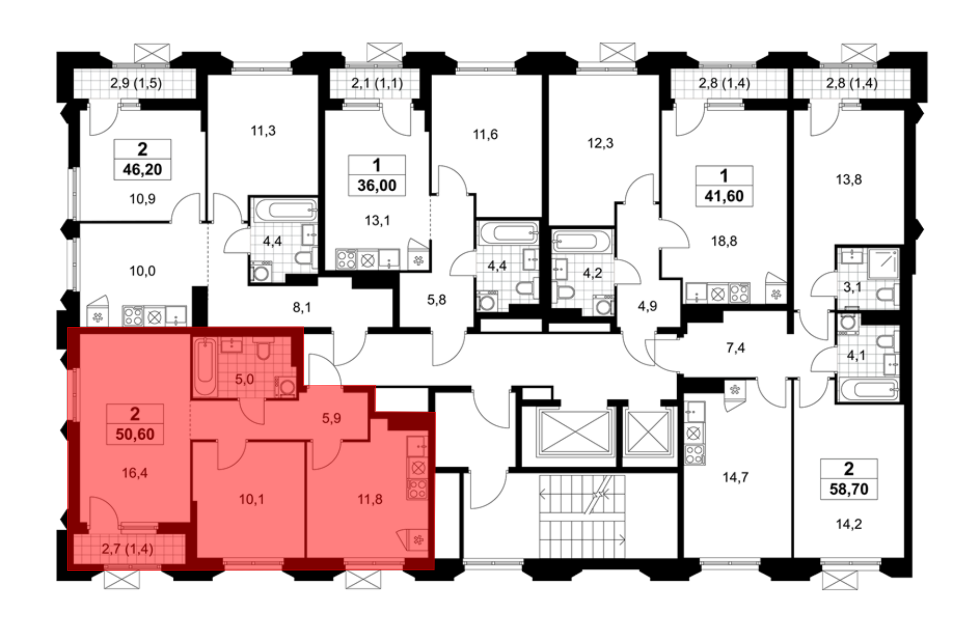 12 096 480 ₽2-к.квартира, 51.3 м², 11 эт.