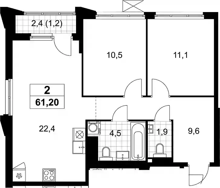 12 476 272 ₽3-к.квартира, 58.5 м², 2 эт.