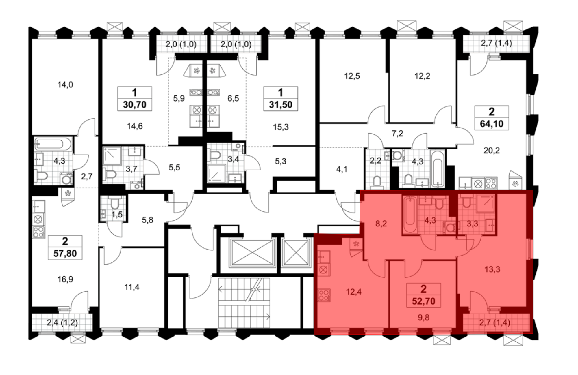 12 166 704 ₽2-к.квартира, 51.3 м², 13 эт.