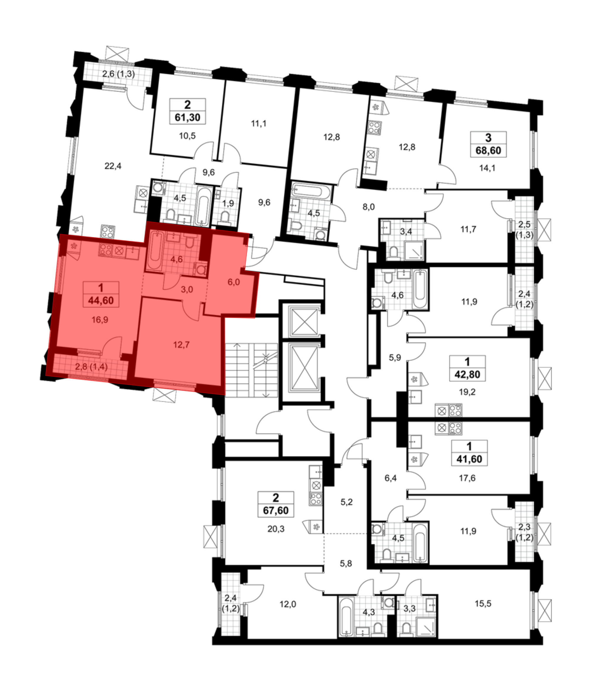 10 842 879 ₽2-к.квартира, 43.3 м², 12 эт.