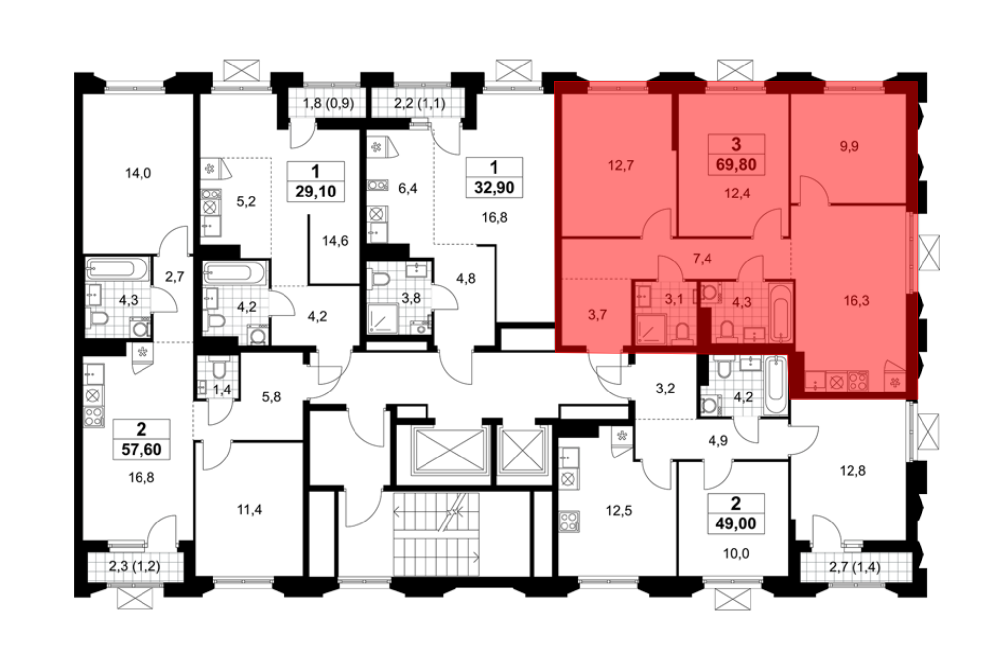 14 857 240 ₽3-к.квартира, 67.9 м², 2 эт.
