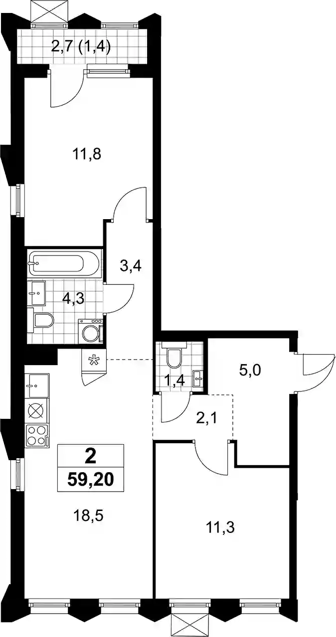 18 016 960 ₽3-к.квартира, 59.6 м², 14 эт.