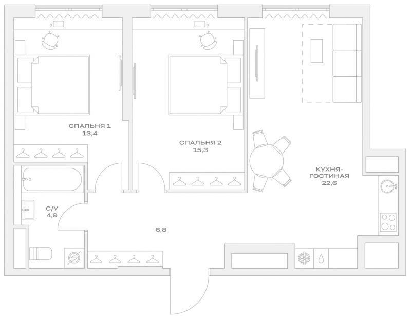 15 711 956 ₽2-к.квартира, 66.8 м², 13 эт.