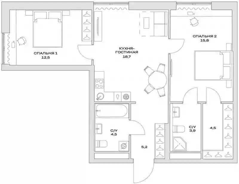 15 711 956 ₽2-к.квартира, 66.8 м², 12 эт.