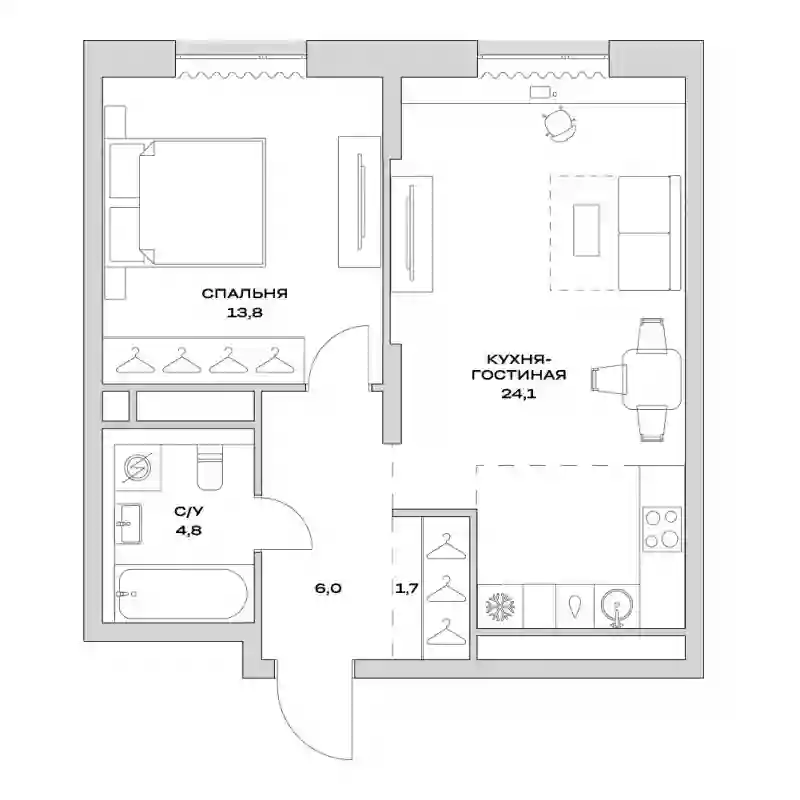 12 124 294 ₽1-к.квартира, 42.1 м², 3 эт.