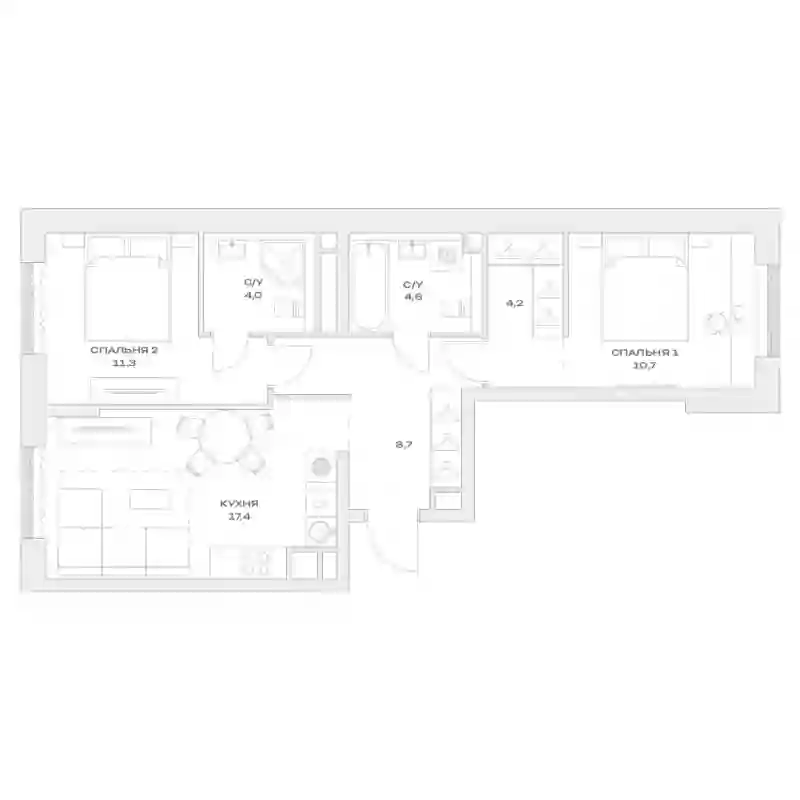 В проекте представлено широкое разнообразие функциональных планировочных решений. В квартирах высокие потолки от 2,85 метра, увеличенные и панорамные окна. Можно выбрать квартиру с чистовой отделкой, отделкой white box или без отделки.