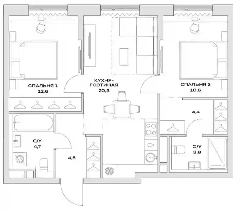 18 970 926 ₽3-к.квартира, 64.1 м², 20 эт.