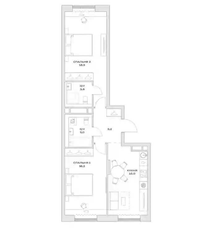 18 112 315 ₽3-к.квартира, 60.9 м², 7 эт.