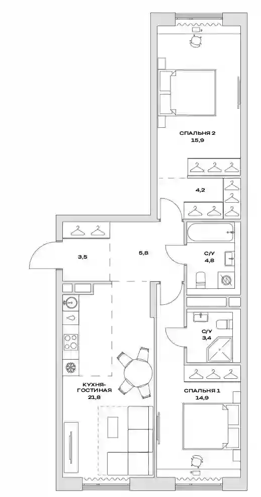 В ЖК «Детали»предложено множество планировочных решений — от компактных студий до просторных трехкомнатных квартир, в том числе эксклюзивные форматы с угловым остеклением, окном в ванной или квартиры с окном в кухне над столешницей. Сдаются они без отделки и с высотой потолков от 2,7 метра.