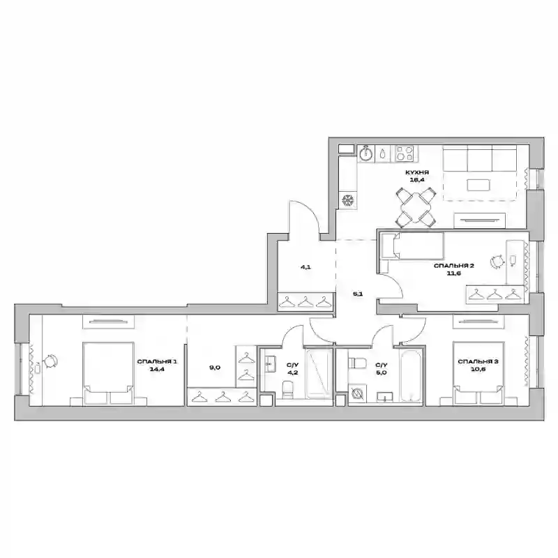 14 954 153 ₽3-к.квартира, 79.5 м², 4 эт.