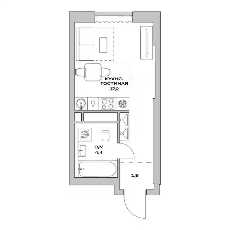 7 818 629 ₽Студия, 22.24 м², 17 эт.