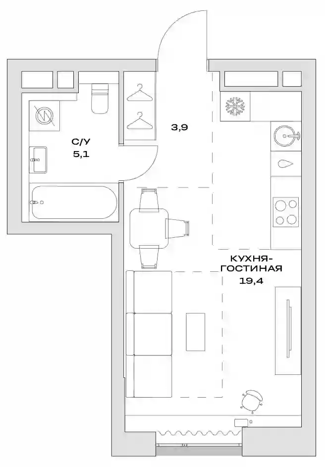 Студия, 28.4 м², 4 эт. в ЖК Детали Корпус 1