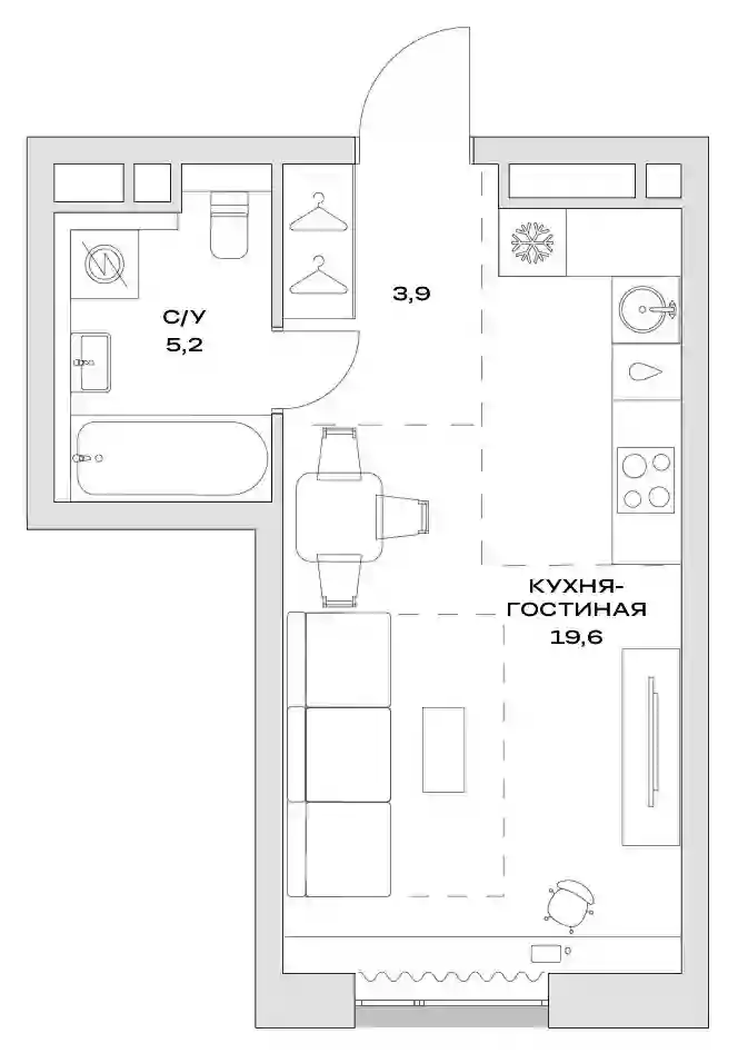 Студия, 28.7 м², 9 эт. в ЖК Детали Корпус 1