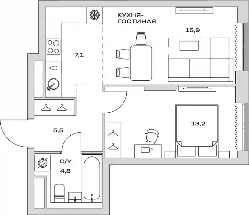 13 003 176 ₽2-к.квартира, 45.9 м², 20 эт.