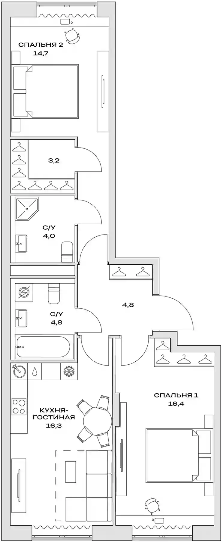 16 676 163 ₽3-к.квартира, 62.2 м², 4 эт.