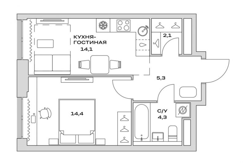 16 110 307 ₽2-к.квартира, 54.1 м², 14 эт.