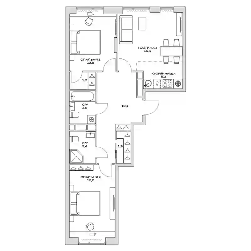 14 742 935 ₽4-к.квартира, 75.3 м², 15 эт.