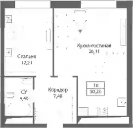 26 053 740 ₽2-к.квартира, 47.7 м², 3 эт.