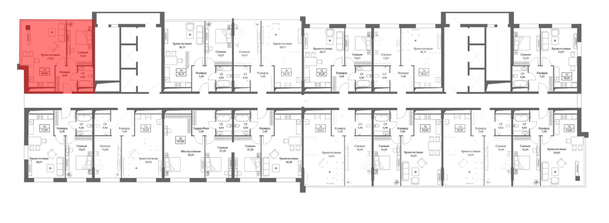 24 103 110 ₽2-к.квартира, 58.52 м², 12 эт.