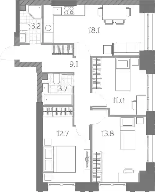 В комплексе «Дмитровское небо»предложено множество планировочных решений: в наличии квартиры, как классического типа, так и европланировки. Сдаются они без стен, высотой потолков 2,7 метра и увеличенными окнами.