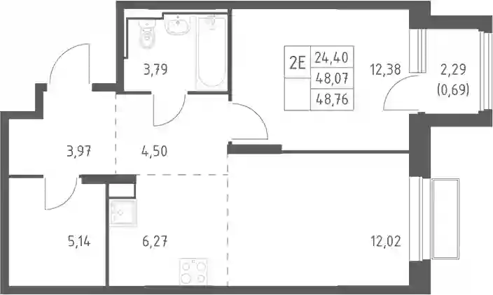 16 289 347 ₽2-к.квартира, 46.09 м², 2 эт.