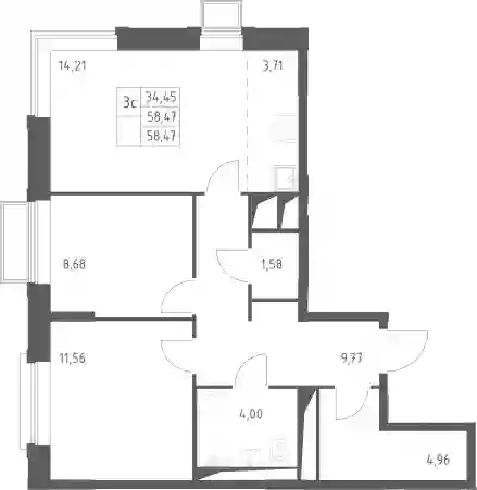 3-к.квартира, 58.47 м², 24 эт. в ЖК Долина Яузы Корпус 1