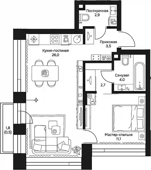 В проекте представлен широкий выбор планировок квартир евро-формата. Площадь квартир варьируется от 31 до 177 кв. метров. В каждой квартире есть просторная кухня-гостиная, продуманная мастер-спальня, вместительная гардеробная, гостевой санузел и постирочная. Предусмотрены квартиры с возможностью объединения, а также ориентированные на две стороны света. На верхних этажах расположены 5 пентхаусов с террасами. В них высота потолков составляет 4,1 метра, а на типовых этажах — 3,25 метра.Квартиры предлагаются с двумя вариантами отделки: White Box и дизайнерской чистовой отделкой. Пентхаусы сдаются без отделки.