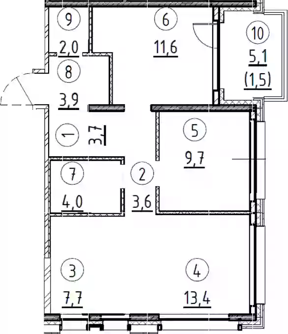 39 580 000 ₽2-к.квартира, 60.7 м², 7 эт.