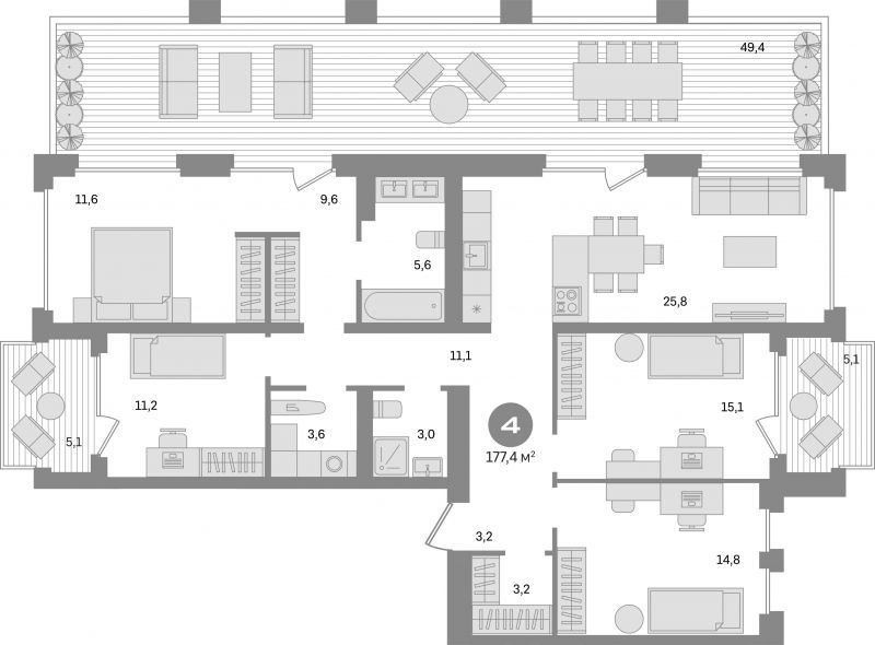 В комплексе предложен широкий выбор планировочных решений: в наличии квартиры как классического типа, так и европланировки. Есть и уникальные форматы: двухуровневые квартиры, квартиры с видовыми террасами и пентхаусы. Все квартиры сдаются с подчистовой отделкой.