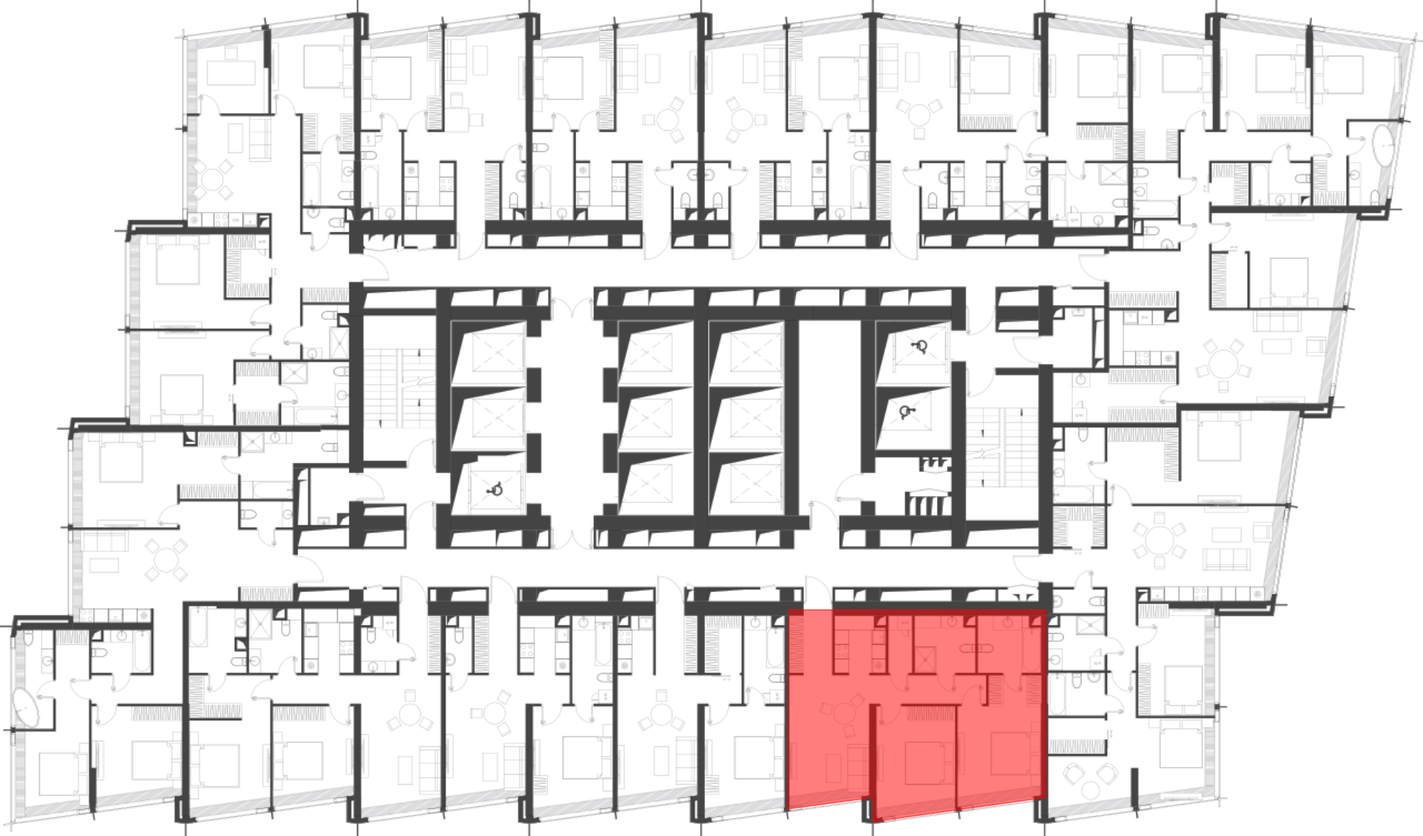 В жилом комплексе «Дом Дау» представлено множество планировочных решений — от 1-комнатных до 5-комнатных квартир, среди которых квартиры с террасами и дровяными каминами. Высота потолков с 79 по 81 этаж составляет 3,8 метров, а на остальных этажах — 3,23 метра.