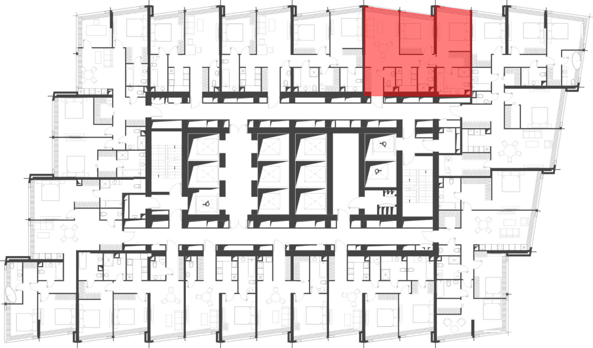 В жилом комплексе «Дом Дау» представлено множество планировочных решений — от 1-комнатных до 5-комнатных квартир, среди которых квартиры с террасами и дровяными каминами. Высота потолков с 79 по 81 этаж составляет 3,8 метров, а на остальных этажах — 3,23 метра.