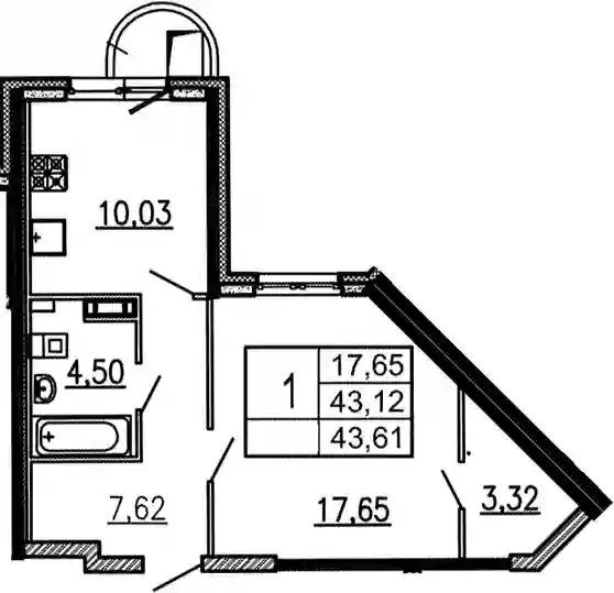 1-к.квартира, 43.12 м², 17 эт. в ЖК Дом-Мегалит в Королёве Корпус 1