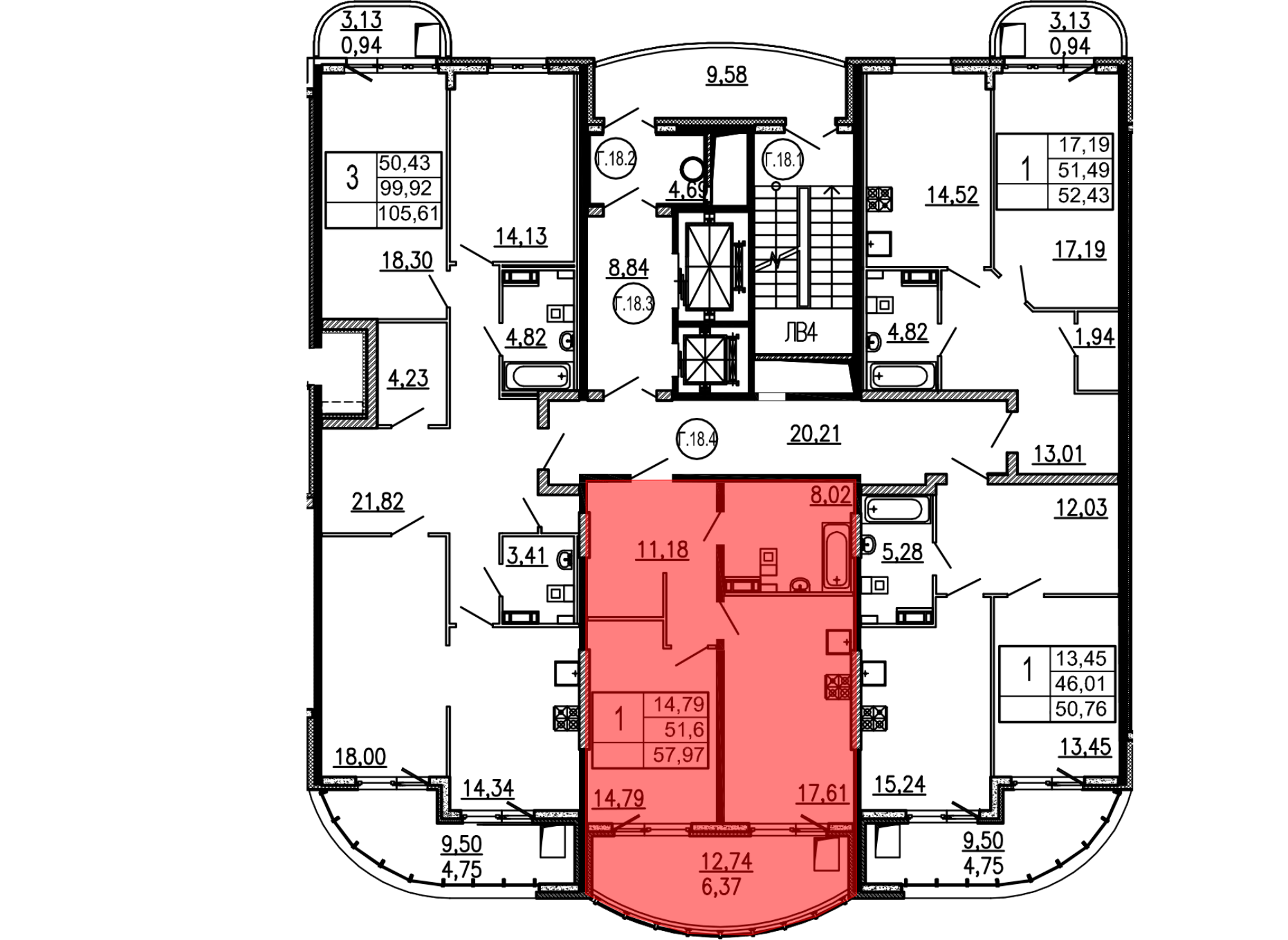 1-к.квартира, 51.6 м², 18 эт. в ЖК Дом-Мегалит в Королёве Корпус 1