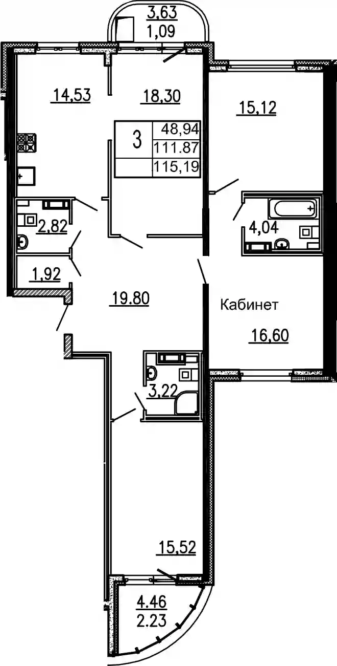 22 538 250 ₽4-к.квартира, 111.17 м², 3 эт.