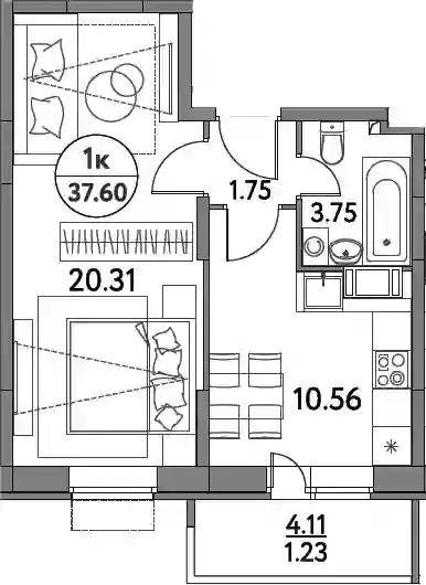 7 113 500 ₽1-к.квартира, 38.34 м², 12 эт.