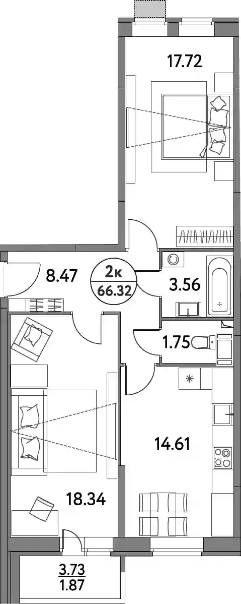 11 549 250 ₽3-к.квартира, 68.7 м², 8 эт.
