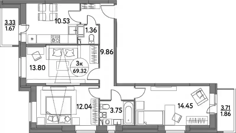 11 952 168 ₽3-к.квартира, 71.06 м², 9 эт.