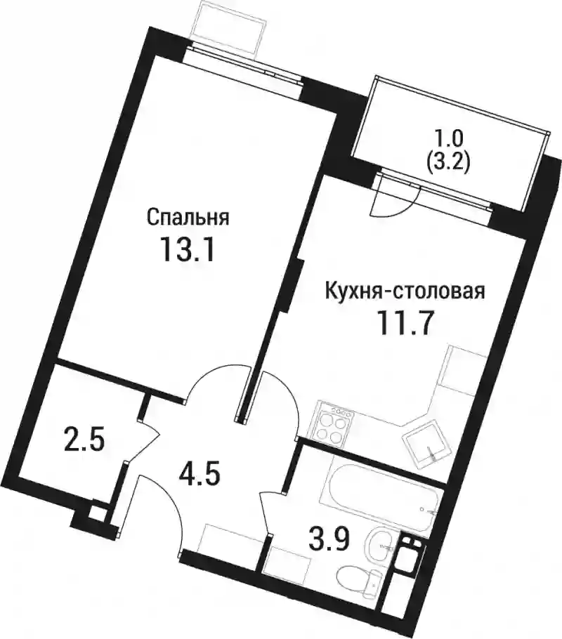 7 565 660 ₽1-к.квартира, 39.5 м², 1 эт.
