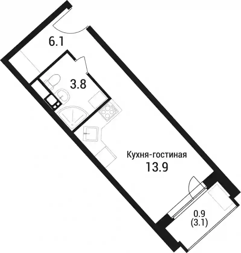 Студия, 23.8 м², 3 эт. в ЖК Дом в Малаховке Корпус 1