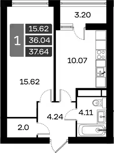 1-к.квартира, 36.04 м², 7 эт. в ЖК Домодедово Парк Корпус 13