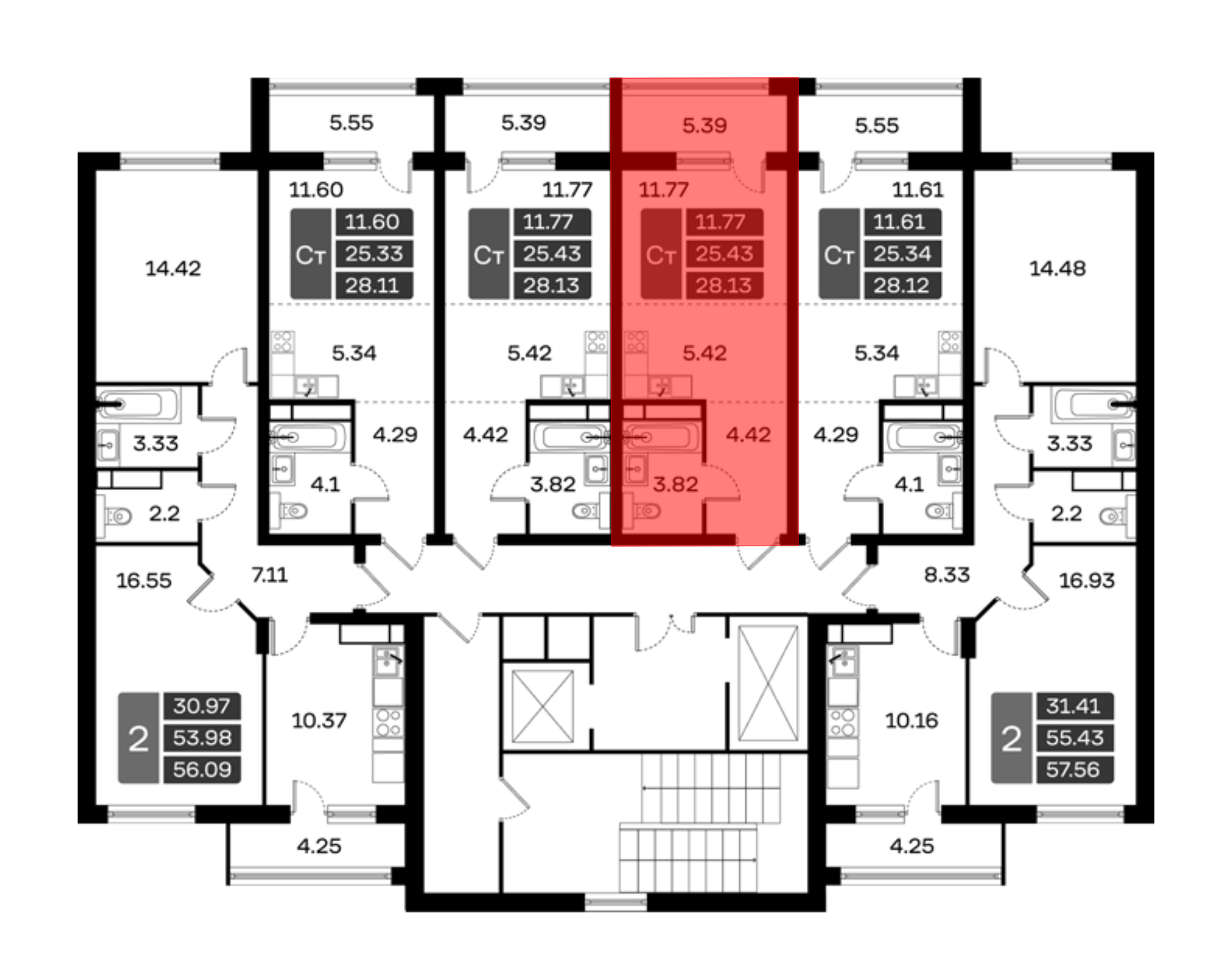12 519 300 ₽2-к.квартира, 55.43 м², 3 эт.