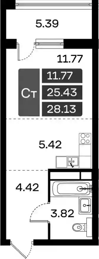 4 769 016 ₽Студия, 26.39 м², 3 эт.